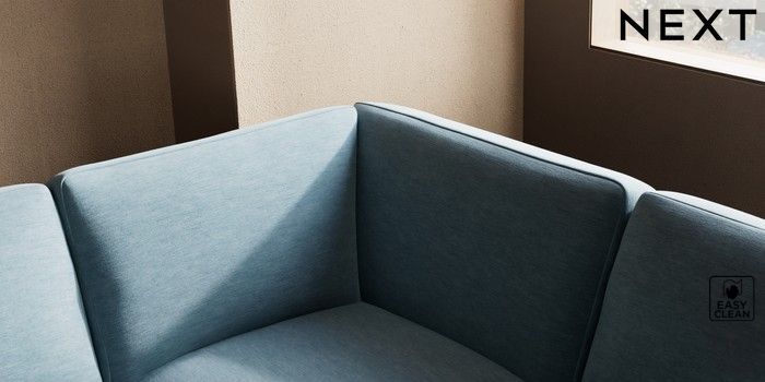 7.2.10 Houghton Deep Sit Large Open End Corner Chaise - Right Hand Fine Chenille Easy Clean Mid Blue Large Square Angle - Brushed Brass | Made Click here to use our website with more accessibility support, for example screen readers