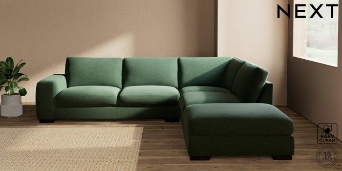 7.2.10 Houghton Deep Sit Large Open End Corner Chaise - Right Hand Fine Chenille Easy Clean Mid Khaki Green Large Square Angle - Dark | Made Click here to use our website with more accessibility support, for example screen readers