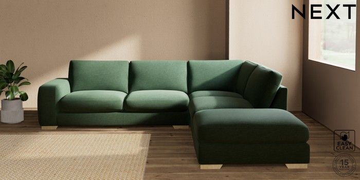 7.2.10 Houghton Deep Sit Large Open End Corner Chaise - Right Hand Fine Chenille Easy Clean Mid Khaki Green Large Square Angle - Light | Made Click here to use our website with more accessibility support, for example screen readers