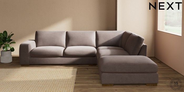 7.2.10 Houghton Deep Sit Large Open End Corner Chaise - Right Hand Luxe Chenille Mink Brown Large Square Angle - Mid | Made Click here to use our website with more accessibility support, for example screen readers