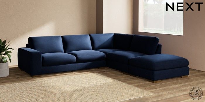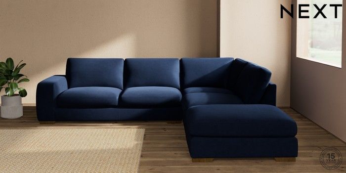 7.2.10 Houghton Deep Sit Large Open End Corner Chaise - Right Hand Luxe Chenille Navy Blue Large Square Angle - Mid | Made Click here to use our website with more accessibility support, for example screen readers