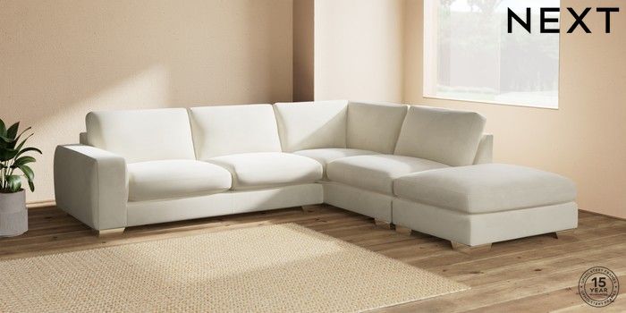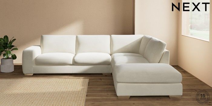 7.2.10 Houghton Deep Sit Large Open End Corner Chaise - Right Hand Luxe Chenille Oyster Large Square Angle - Chrome Metal | Made Click here to use our website with more accessibility support, for example screen readers