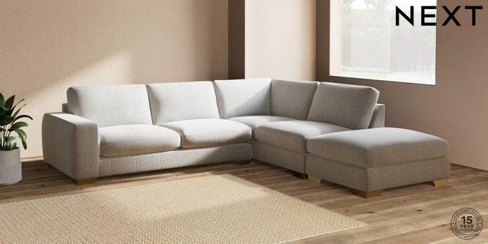 7.2.10 Houghton Deep Sit Large Open End Corner Chaise - Right Hand Multi Weave Light Blue Large Square Angle - Brushed Brass | Made Click here to use our website with more accessibility support, for example screen readers