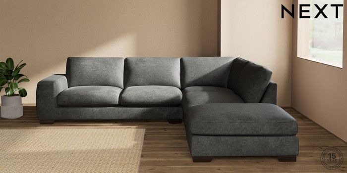 7.2.10 Houghton Deep Sit Large Open End Corner Chaise - Right Hand Plush Chenille Dark Grey Large Square Angle - Gunmetal | Made Click here to use our website with more accessibility support, for example screen readers