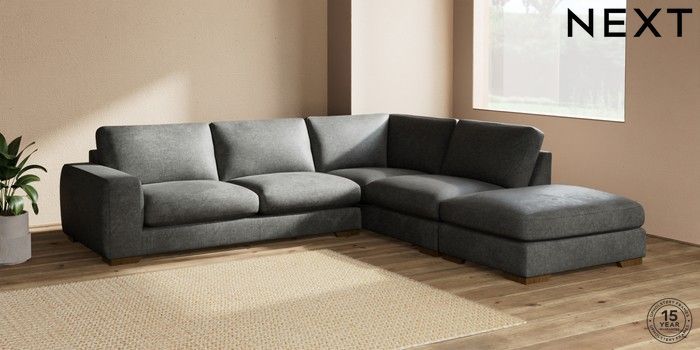 7.2.10 Houghton Deep Sit Large Open End Corner Chaise - Right Hand Plush Chenille Dark Grey Large Square Angle - Mid | Made Click here to use our website with more accessibility support, for example screen readers
