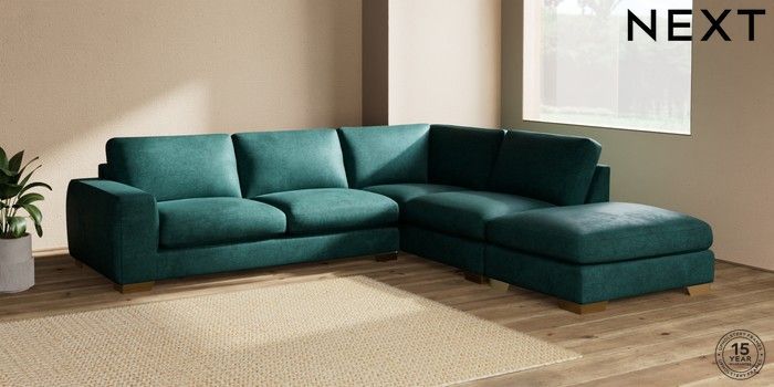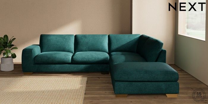 7.2.10 Houghton Deep Sit Large Open End Corner Chaise - Right Hand Plush Chenille Dark Teal Green Large Square Angle - Brushed Brass | Made Click here to use our website with more accessibility support, for example screen readers