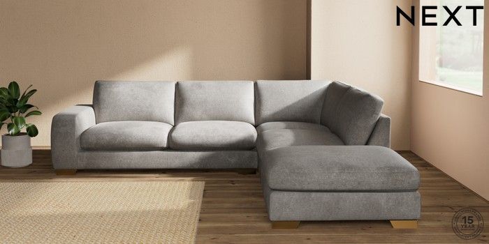 7.2.10 Houghton Deep Sit Large Open End Corner Chaise - Right Hand Plush Chenille Light Grey Large Square Angle - Brushed Brass | Made Click here to use our website with more accessibility support, for example screen readers