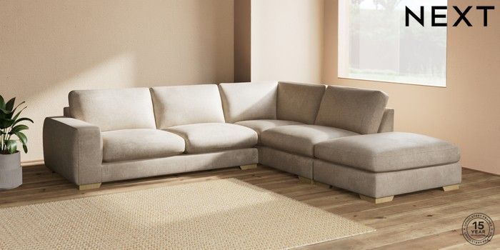 7.2.10 Houghton Deep Sit Large Open End Corner Chaise - Right Hand Plush Chenille Light Natural Large Square Angle - Light | Made Click here to use our website with more accessibility support, for example screen readers