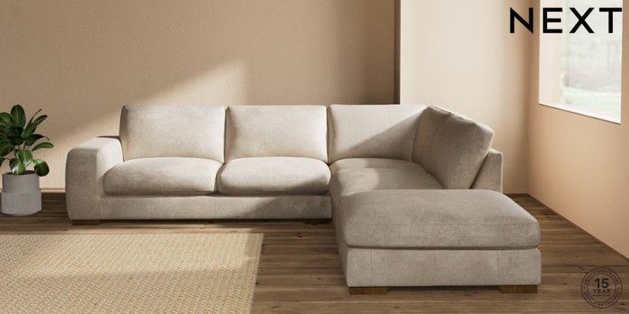 7.2.10 Houghton Deep Sit Large Open End Corner Chaise - Right Hand Plush Chenille Light Natural Large Square Angle - Mid | Made Click here to use our website with more accessibility support, for example screen readers