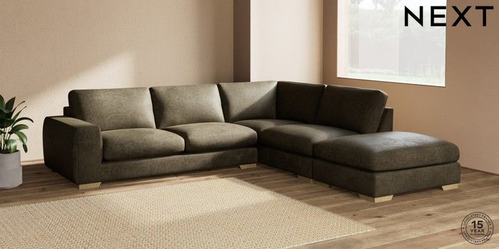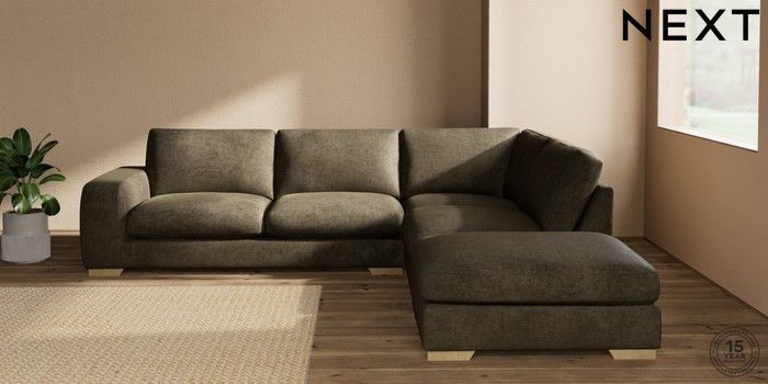 7.2.10 Houghton Deep Sit Large Open End Corner Chaise - Right Hand Plush Chenille Moss Green Large Square Angle - Light | Made Click here to use our website with more accessibility support, for example screen readers