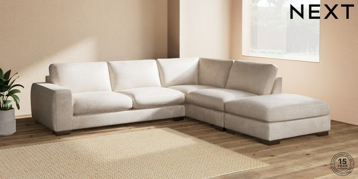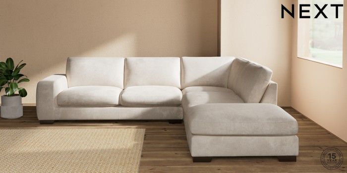 7.2.10 Houghton Deep Sit Large Open End Corner Chaise - Right Hand Plush Chenille Oyster Large Square Angle - Gunmetal | Made Click here to use our website with more accessibility support, for example screen readers