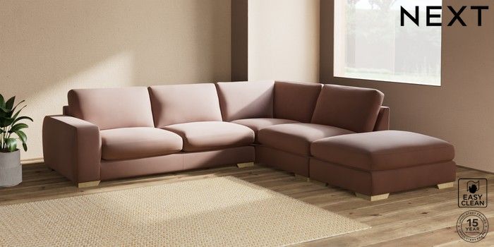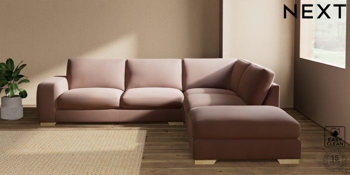 7.2.10 Houghton Deep Sit Large Open End Corner Chaise - Right Hand Plush Velvet Easy Clean Mid Natural Large Square Angle - Light | Made Click here to use our website with more accessibility support, for example screen readers