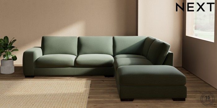 7.2.10 Houghton Deep Sit Large Open End Corner Chaise - Right Hand Relaxed Linen Look Dark Green Large Square Angle - Dark | Made Click here to use our website with more accessibility support, for example screen readers