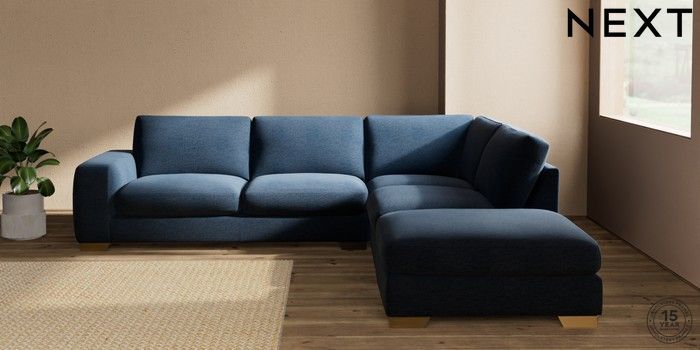 7.2.10 Houghton Deep Sit Large Open End Corner Chaise - Right Hand Ripple Chenille Dark Blue Large Square Angle - Brushed Brass | Made Click here to use our website with more accessibility support, for example screen readers