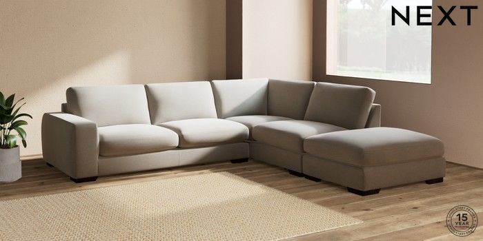7.2.10 Houghton Deep Sit Large Open End Corner Chaise - Right Hand Ripple Chenille Light Natural Large Square Angle - Dark | Made Click here to use our website with more accessibility support, for example screen readers