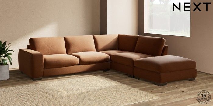 7.2.10 Houghton Deep Sit Large Open End Corner Chaise - Right Hand Ripple Chenille Mid Rust Brown Large Square Angle - Gunmetal | Made Click here to use our website with more accessibility support, for example screen readers