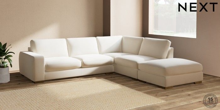 7.2.10 Houghton Deep Sit Large Open End Corner Chaise - Right Hand Ripple Chenille Oyster Large Square Angle - Mid | Made Click here to use our website with more accessibility support, for example screen readers