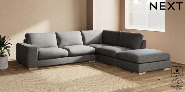 7.2.10 Houghton Deep Sit Large Open End Corner Chaise - Right Hand Tweedy Blend Easy Clean Dark Grey Large Square Angle - Light | Made Click here to use our website with more accessibility support, for example screen readers