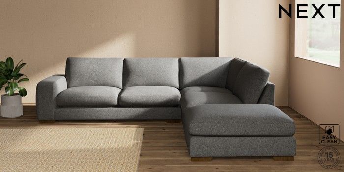 7.2.10 Houghton Deep Sit Large Open End Corner Chaise - Right Hand Tweedy Blend Easy Clean Dark Grey Large Square Angle - Mid | Made Click here to use our website with more accessibility support, for example screen readers