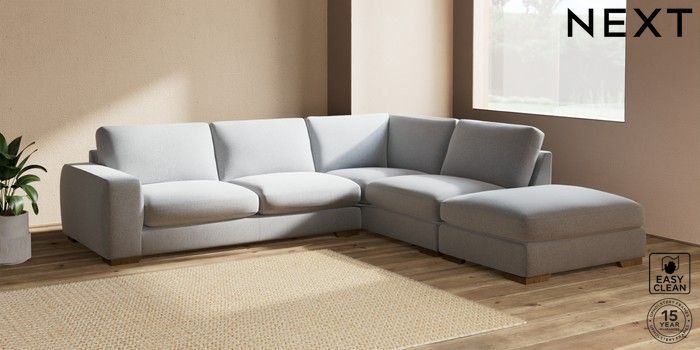7.2.10 Houghton Deep Sit Large Open End Corner Chaise - Right Hand Tweedy Blend Easy Clean Light Silver Grey Large Square Angle - Mid | Made Click here to use our website with more accessibility support, for example screen readers