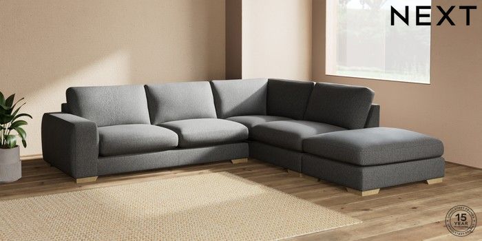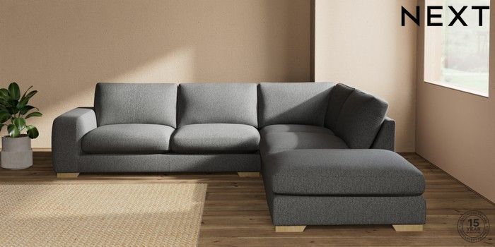 7.2.10 Houghton Deep Sit Large Open End Corner Chaise - Right Hand Tweedy Chenille Dark Grey Large Square Angle - Light | Made Click here to use our website with more accessibility support, for example screen readers