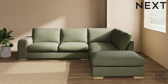 7.2.10 Houghton Deep Sit Large Open End Corner Chaise - Right Hand Tweedy Chenille Mid Moss Green Large Square Angle - Light | Made Click here to use our website with more accessibility support, for example screen readers