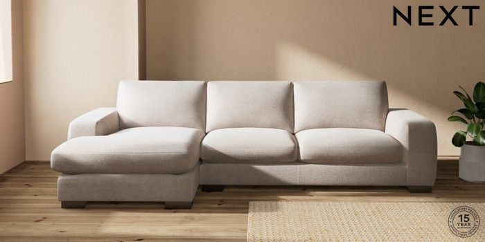 7.2.10 Houghton Deep Sit Large Sofa Chaise - Left Hand Boucle Chenille Light Natural Large Square Angle - Gunmetal | Made Click here to use our website with more accessibility support, for example screen readers