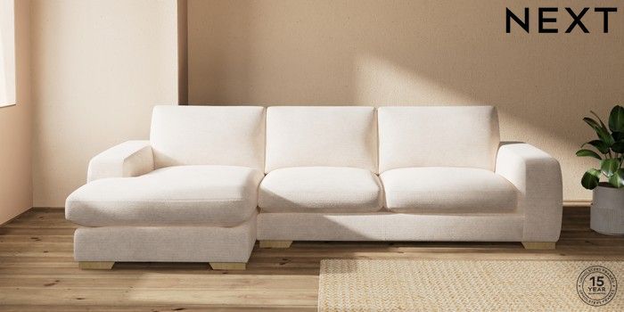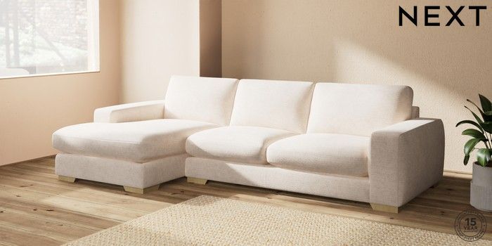 7.2.10 Houghton Deep Sit Large Sofa Chaise - Left Hand Boucle Chenille Oyster Large Square Angle - Light | Made Click here to use our website with more accessibility support, for example screen readers
