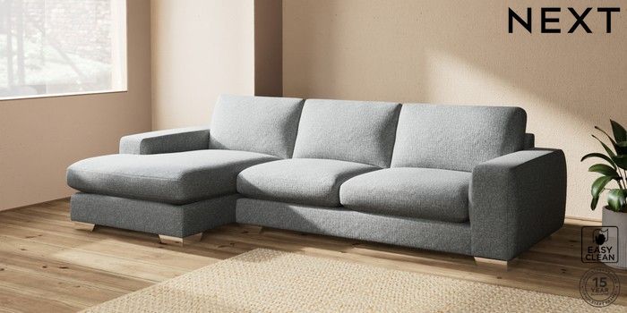 7.2.10 Houghton Deep Sit Large Sofa Chaise - Left Hand Chunky Boucle Easy Clean Mid Grey Large Square Angle - Chrome Metal | Made Click here to use our website with more accessibility support, for example screen readers