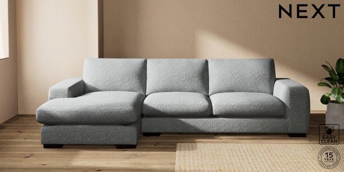 7.2.10 Houghton Deep Sit Large Sofa Chaise - Left Hand Chunky Boucle Easy Clean Mid Grey Large Square Angle - Dark | Made Click here to use our website with more accessibility support, for example screen readers