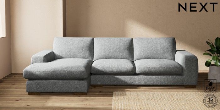 7.2.10 Houghton Deep Sit Large Sofa Chaise - Left Hand Chunky Boucle Easy Clean Mid Grey Large Square Angle - Mid | Made Click here to use our website with more accessibility support, for example screen readers