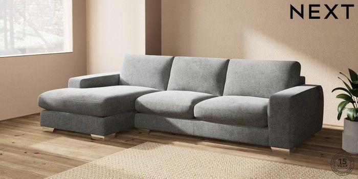 7.2.10 Houghton Deep Sit Large Sofa Chaise - Left Hand Chunky Chenille Dark Grey Large Square Angle - Chrome Metal | Made Click here to use our website with more accessibility support, for example screen readers