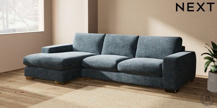 7.2.10 Houghton Deep Sit Large Sofa Chaise - Left Hand Chunky Chenille Dark Navy Blue Large Square Angle - Brushed Brass | Made Click here to use our website with more accessibility support, for example screen readers