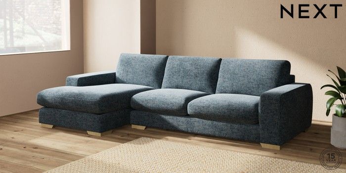 7.2.10 Houghton Deep Sit Large Sofa Chaise - Left Hand Chunky Chenille Dark Navy Blue Large Square Angle - Light | Made Click here to use our website with more accessibility support, for example screen readers