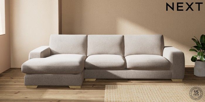 7.2.10 Houghton Deep Sit Large Sofa Chaise - Left Hand Chunky Chenille Light Dove Large Square Angle - Light | Made Click here to use our website with more accessibility support, for example screen readers