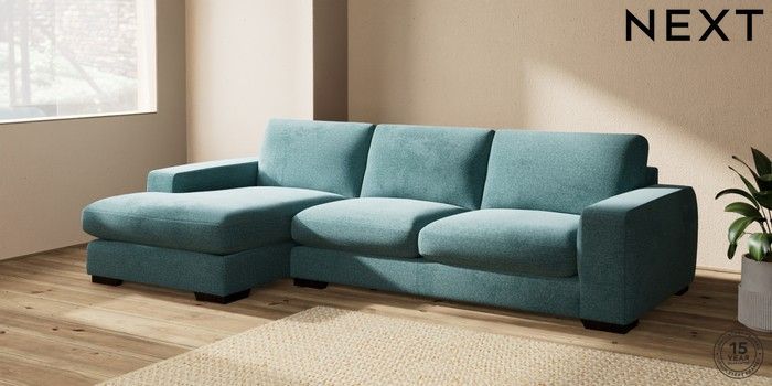 7.2.10 Houghton Deep Sit Large Sofa Chaise - Left Hand Chunky Chenille Mid Teal Green Large Square Angle - Dark | Made Click here to use our website with more accessibility support, for example screen readers