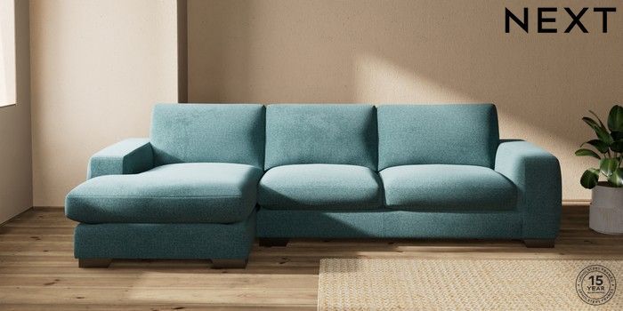 7.2.10 Houghton Deep Sit Large Sofa Chaise - Left Hand Chunky Chenille Mid Teal Green Large Square Angle - Gunmetal | Made Click here to use our website with more accessibility support, for example screen readers