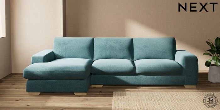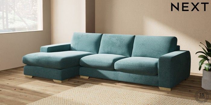 7.2.10 Houghton Deep Sit Large Sofa Chaise - Left Hand Chunky Chenille Mid Teal Green Large Square Angle - Light | Made Click here to use our website with more accessibility support, for example screen readers