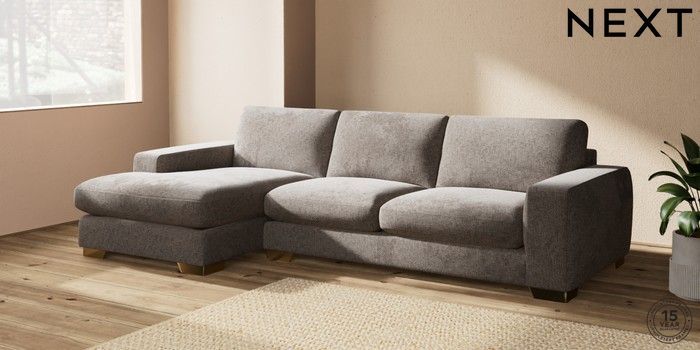 7.2.10 Houghton Deep Sit Large Sofa Chaise - Left Hand Chunky Chenille Mink Brown Large Square Angle - Brushed Brass | Made Click here to use our website with more accessibility support, for example screen readers