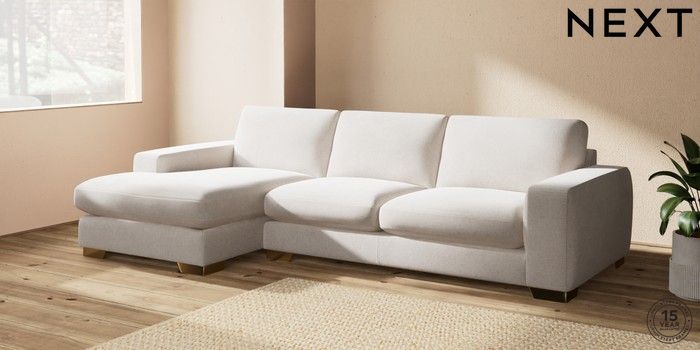 7.2.10 Houghton Deep Sit Large Sofa Chaise - Left Hand Chunky Chenille Oyster Large Square Angle - Brushed Brass | Made Click here to use our website with more accessibility support, for example screen readers