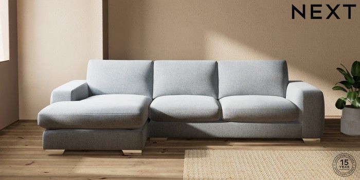 7.2.10 Houghton Deep Sit Large Sofa Chaise - Left Hand Chunky Marl Mid Grey Large Square Angle - Chrome Metal | Made Click here to use our website with more accessibility support, for example screen readers