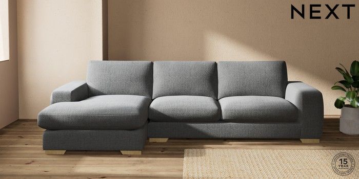 7.2.10 Houghton Deep Sit Large Sofa Chaise - Left Hand Chunky Texture Dark Grey Large Square Angle - Light | Made Click here to use our website with more accessibility support, for example screen readers