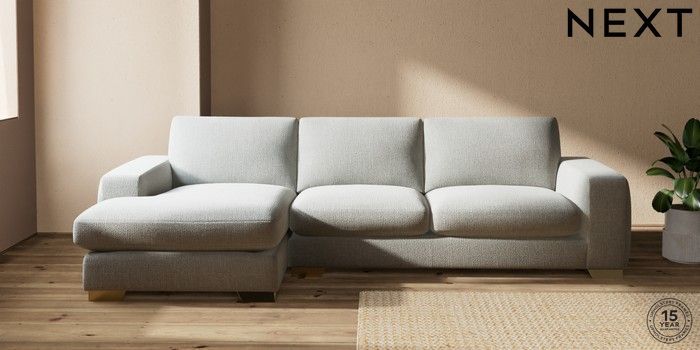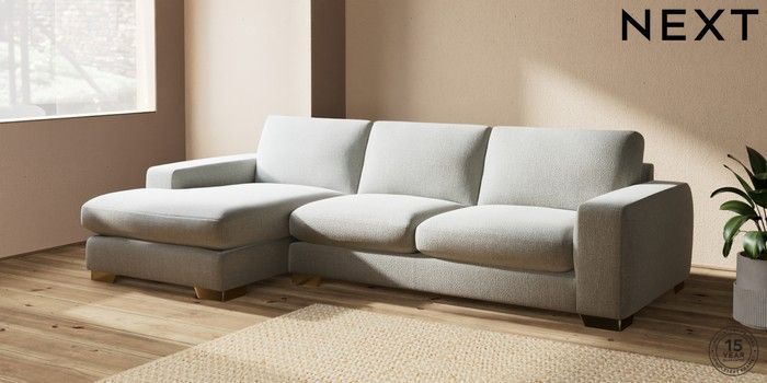 7.2.10 Houghton Deep Sit Large Sofa Chaise - Left Hand Chunky Texture Dove Large Square Angle - Brushed Brass | Made Click here to use our website with more accessibility support, for example screen readers