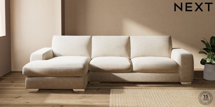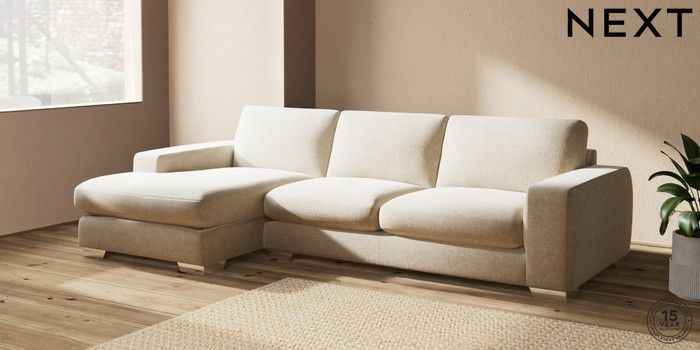 7.2.10 Houghton Deep Sit Large Sofa Chaise - Left Hand Chunky Weave Cream Large Square Angle - Chrome Metal | Made Click here to use our website with more accessibility support, for example screen readers