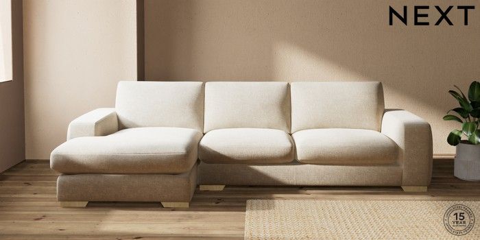 7.2.10 Houghton Deep Sit Large Sofa Chaise - Left Hand Chunky Weave Cream Large Square Angle - Light | Made Click here to use our website with more accessibility support, for example screen readers