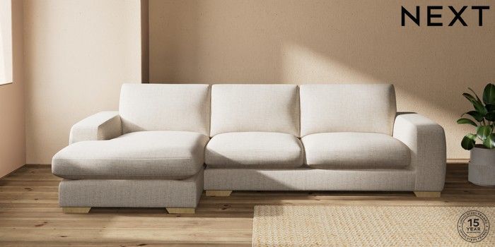 7.2.10 Houghton Deep Sit Large Sofa Chaise - Left Hand Chunky Weave Mid Natural Large Square Angle - Light | Made Click here to use our website with more accessibility support, for example screen readers