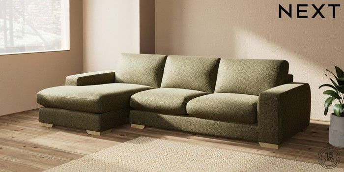 7.2.10 Houghton Deep Sit Large Sofa Chaise - Left Hand Cotswold Chenille Dark Green Large Square Angle - Light | Made Click here to use our website with more accessibility support, for example screen readers