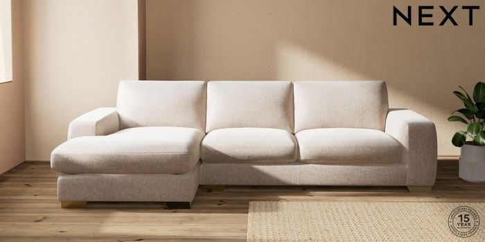 7.2.10 Houghton Deep Sit Large Sofa Chaise - Left Hand Cotswold Chenille Light Natural Large Square Angle - Brushed Brass | Made Click here to use our website with more accessibility support, for example screen readers