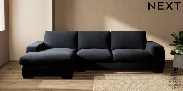 7.2.10 Houghton Deep Sit Large Sofa Chaise - Left Hand Fine Chenille Easy Clean Black Large Square Angle - Dark | Made Click here to use our website with more accessibility support, for example screen readers