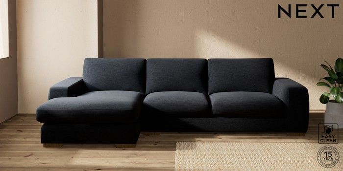 7.2.10 Houghton Deep Sit Large Sofa Chaise - Left Hand Fine Chenille Easy Clean Black Large Square Angle - Mid | Made Click here to use our website with more accessibility support, for example screen readers